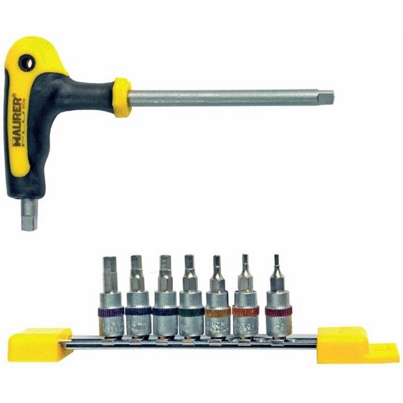Set inserti a bussola (8 pezzi) con impugnatura e pratico supporto in acciaio S2 satinato. Contenuto inserti: Esagonali 2-2,5-3-4-5-6-8. Attacco 1/4.