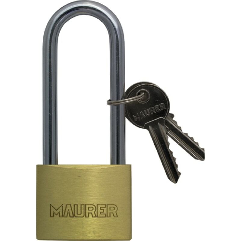 LUCCHETTO ARCO EXTRA LUNGO MAURER 50MM Misura: 50 mm. Arco: Extra lungo Corpo in ottone - Arco in acciaio temperato - 2 chiavi universali