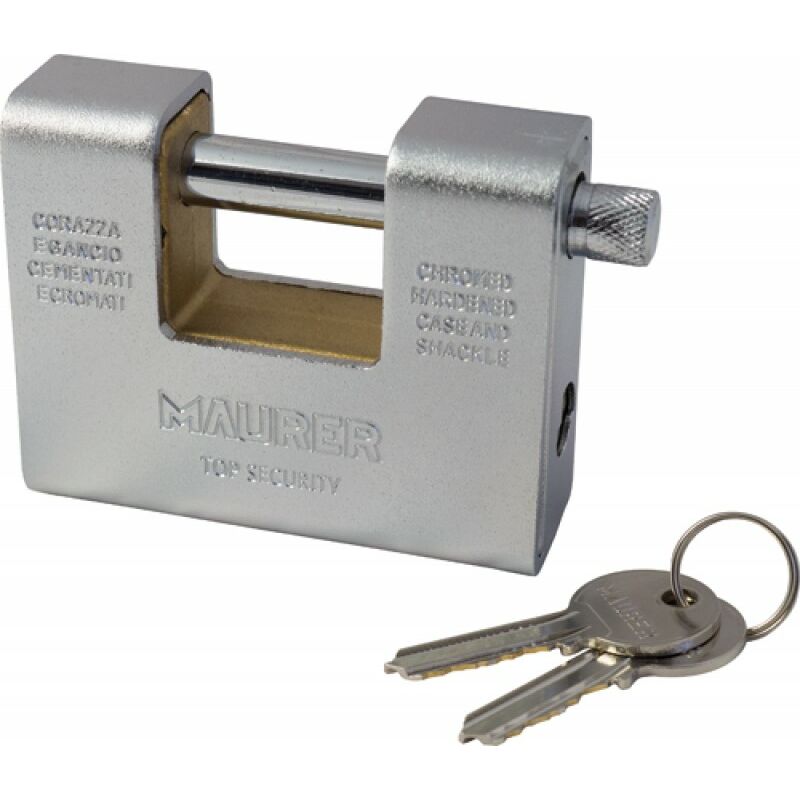 Corazza esterna in acciaio cementato e cromato - Corpo in ottone - 2 chiavi Confezione: 1 PZ Misura 80 mm. Asse 11 mm. Misura int. 30x14 mm.
