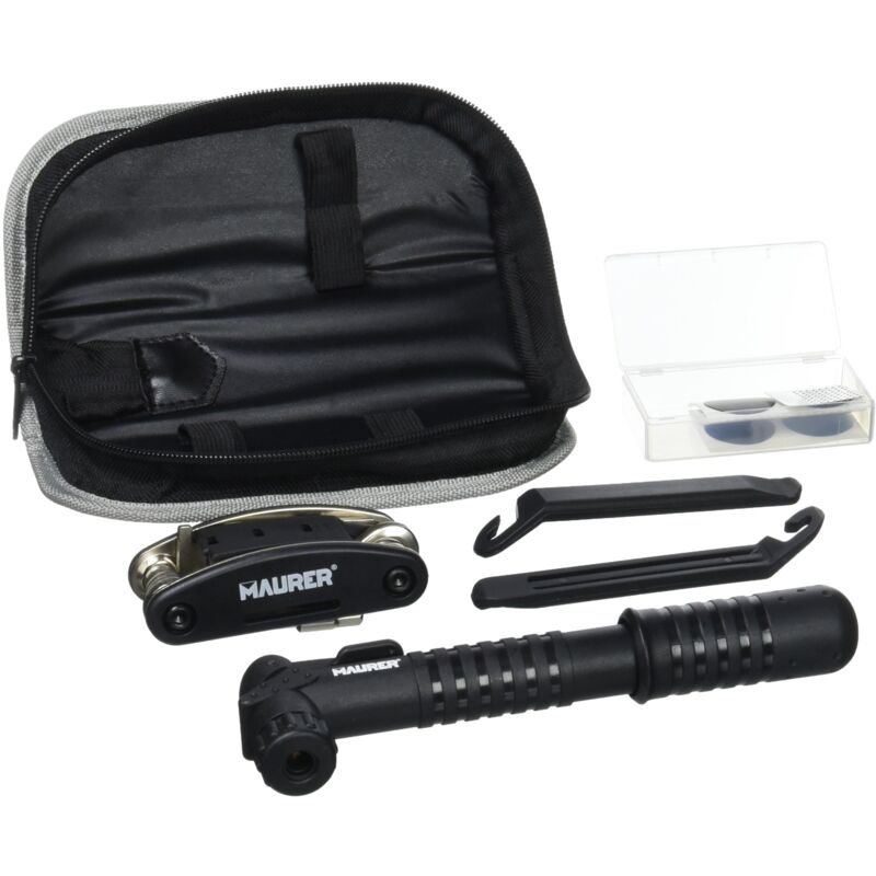 Kit per manutenzione bici con mini pompa, comprende: 6 chiavi a brugola, 1 adattatore bussole, 2 cacciaviti PH a taglio, 3 bussole, 3 bocche chiavi fisse, 1 bocca chiave centraggio, 1 minipompa, 2 fogli da 6 pezze autoadesive (non necessitano di mastice) Ø 25 mm., 1 foglio per carteggiare, 2 levagomme, 1 borsetta telata da fissare sotto la sella della bici Confezione: 1 CF Serie 33 pz. Kit per manutenzione bici con mini pompa, comprende: 6 chiavi a brugola, 1 adattatore bussole, 2 cacciaviti PH a taglio, 3 bussole, 3 bocche chiavi fisse, 1 bocca chiave centraggio, 1 minipompa, 2 fogli da 6 pezze autoadesive (non necessitano di mastice) Ø 25 mm., 1 foglio per carteggiare, 2 levagomme, 1 borsetta telata da fissare sotto la sella della bici