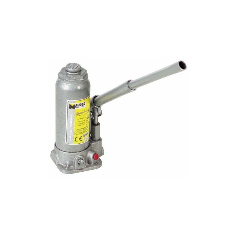 Martinetto idraulico a bottiglia Maurer 2000 Kg. - Sollevamento massimo: 2.000 kg. - Altezza minima/massima: 181/345 mm. - Base stabile.