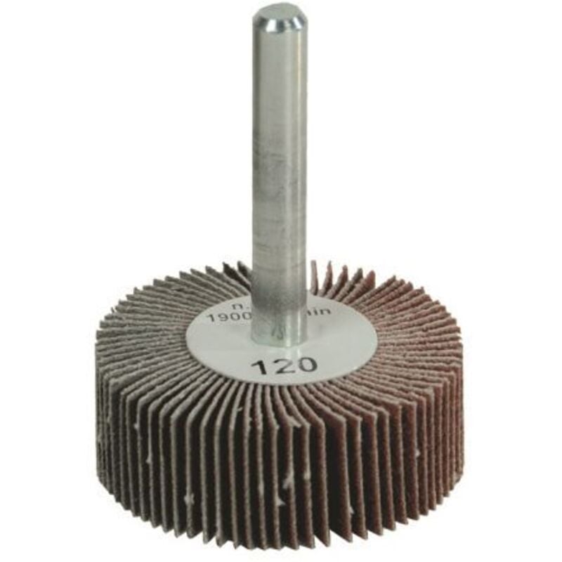 Codolo in acciaio da 6 mm. - Lamelle in abrasive - Velocita' max di esercizio 12000 giri/min. Diametro: 60x40 mm. Grana 80 Gambo 6 mm.