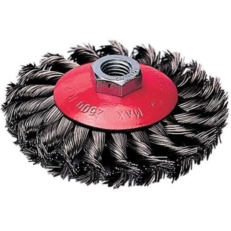 In fili di acciaio - Fili acciaio a mazzetti ritorti 0,5 mm. - Attacco filettato 14Ma Diametro: 100x12 mm. Foro 14MA