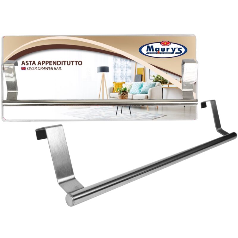 Asta appendi-tutto. marchio Maury's. Per sportelli. Ideale sia per interno mobili che per esterno mobili. Di facilissima applicazione. Cromata.