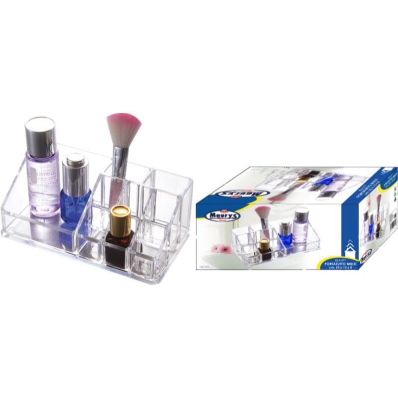 Il pratico porta oggetti Maury s è resistente. adatto a contenere ogni tipo di oggetto: cancelleria. trucco. make up. minuteria. bigiotteria e ferramenta. Dotato di uno scomparto più grande e 8 più piccoli. diversi in altezza per facilitare il contenimento degli oggetti con lunghezze diverse. Il suo design versatile lo rende un ottimo complemento d'arredo per ogni stanza della casa ed ogni tipo di arredamento. Porta oggetti con 9 scomparti Misure: 9 x 17 x 7 cm Materiale: plastica Colore: trasparente