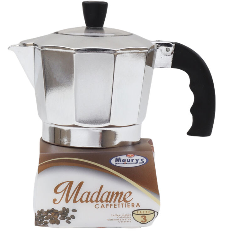 La caffettiera Maury's è in grande stile classico con piacevoli rotondità che ne arricchiscono l'immagine estetica generale. Mantiene inalterate le caratteristiche qualitative della classica caffettiera casalinga. ma con un tocco di design in più. con i manici colorati: marroni o neri. Caffettiera per fornello a gas Capacità: 3 tazze di caffè Colore assortiti: manico marrone / manico nero Materiale: metallo Lavabile in lavastoviglie COLORAZIONE ASSORTITA: Il prodotto verrà spedito in un colore e/o decoro casuale tra quelli proposti a seconda della disponibilità di magazzino.