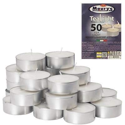 Maury's Candeline Tea Light Bianche Senza Profumo Base In Metallo (50 candele)