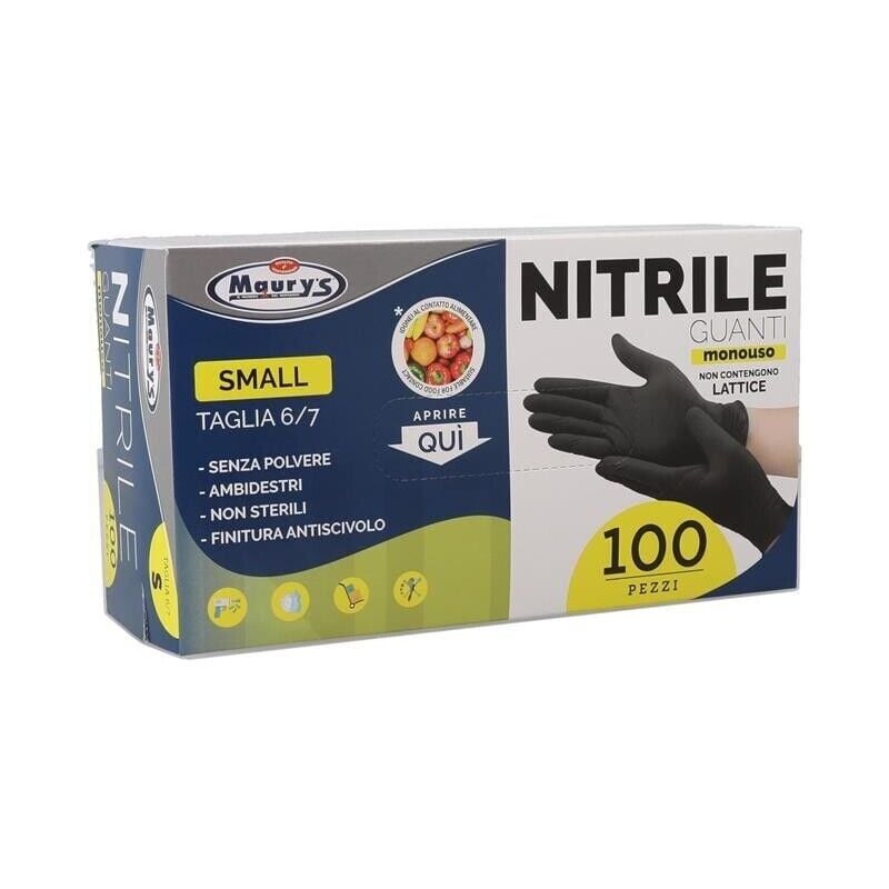 Guanti monouso realizzati in nitrile in confezione da 100 pezzi in taglia S. I guanti multiuso in Nitrile sono studiati con una nuova tecnologia inodore. senza polvere ad alta flessibilità. ed ottima aderenza. Grazie al materiale con il quale sono realizzati. i guanti in nitrile sono atossici e quindi adatti ad ogni utilizzo. anche per uso alimentare. Maury's Guanti in Nitrile In confezione da 100 pezzi Taglia: S Comodi flessibili e aderenti Ipoallergenici