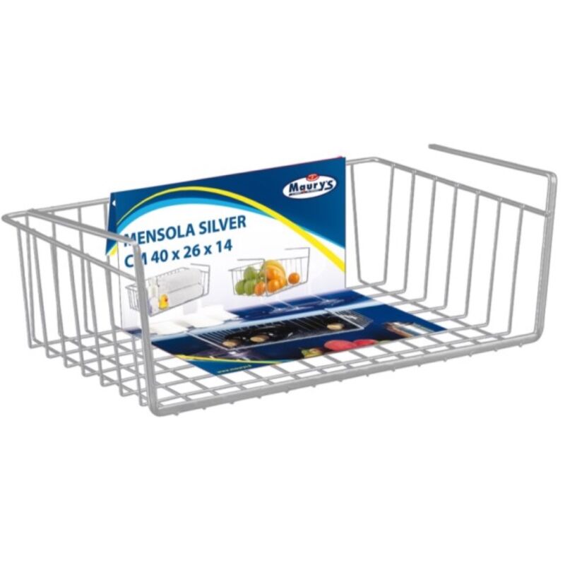 MAURYS MENSOLA SOTTO PENSILE SILVER 40 X 26 X 14 CM Mensola da appoggio Applicazione sottopensile Materiale: metallo Misure: 40 x 26 x 14 cm La mensola Maury's è utile sia in ufficio che a casa per raddoppiare i piani di appoggio di una superficie. Anche all'interno di credenze o sportelli da cucina. per aumentare lo spazio sfruttabile.