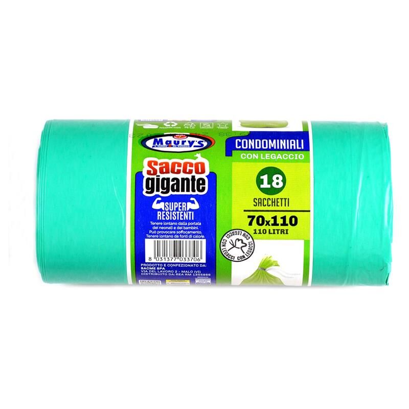 Maury's Sacco Gigante Super Resistente Condominiale 70x110 18 PZ Verde 110 LT Il Maury's Sacco Gigante Super Resistente è la soluzione ideale per la gestione dei rifiuti condominiali. Con una capacità di 110 litri. questi sacchi sono progettati per resistere a carichi pesanti e garantire una durata eccezionale. Perfetti per l'uso quotidiano. offrono una combinazione di robustezza e praticità. Scopri di più sulle caratteristiche che rendono questo prodotto indispensabile per il tuo condominio. Dimensioni generose: Misura 70x110 cm. ideale per grandi quantità di rifiuti. Alta resistenza: Realizzato con materiali di qualità per evitare rotture e strappi. Capacità elevata: Può contenere fino a 110 litri. perfetto per usi intensivi. Confezione conveniente: Include 18 sacchi. garantendo una lunga durata. Colore verde: Facile da identificare e differenziare dagli altri sacchi. Il Maury's Sacco Gigante Super Resistente è un prodotto di alta qualità che semplifica la gestione dei rifiuti