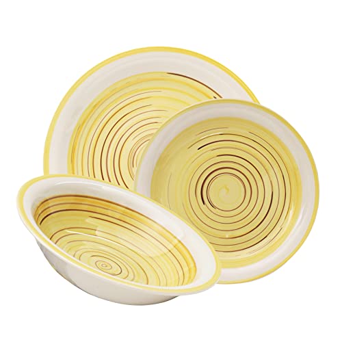 SERVIZIO: questo bellissimo set si compone di 12 pezzi. Include 4 piatti da portata fondi, 4 piatti da portata piani e un bellissimo set di piattini da dolce o frutta