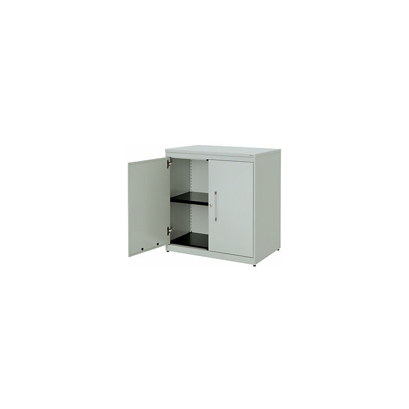 Armadio con ante a battente, alt. x largh. 830 x 800 mm, pannello in plastica, 1 ripiano, grigio chiaro / grigio chiaro / grigio chiaro. Fornitura = montato. Larghezza = 800 mm. Altezza = 830 mm. Profondità = 432 mm. Colore corpo = grigio chiaro RAL 7035. Materiale = acciaio, verniciato a polvere. Tipo di prodotto = armadi con ante a battente. Tipo di porta = anta a battente. Colore porta = grigio chiaro RAL 7035. Numero ante = 2 pz. Numero ripiani = 1 pz. Materiale ripiani = acciaio, verniciato a polvere. Colore ripiani = nero grafite RAL 9011. Portata per ripiano = 44 kg. Caratteristiche = con serratura. Serratura = serratura a cilindro girevole con chiusura a triplo chiavistello, 2 chiavi incluse. Numero file raccoglitori = 2 pz. Dotazione interna = 1 ripiano. Angolo di apertura delle porte = 120 °. Semplice spazio per raccoglitori, documenti e materiale da ufficio. Il modello classico tra gli armadi archivio. Design minimalista. Funzionalità pratica. Corpo: robusto corpo in acciaio