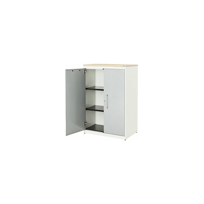 Armadio con ante a battente, alt. x largh. 1180 x 800 mm, pannello in plastica, 2 ripiani, bianco puro / alluminio brillante / acero. Fornitura = montato. Larghezza = 800 mm. Altezza = 1180 mm. Profondità = 432 mm. Colore corpo = bianco puro RAL 9010. Materiale = acciaio, verniciato a polvere. Tipo di prodotto = armadi con ante a battente. Tipo di porta = anta a battente. Colore porta = alluminio brillante RAL 9006. Numero ante = 2 pz. Numero ripiani = 2 pz. Materiale ripiani = acciaio, verniciato a polvere. Colore ripiani = nero grafite RAL 9011. Portata per ripiano = 44 kg. Caratteristiche = con serratura. Serratura = serratura a cilindro girevole con chiusura a triplo chiavistello, 2 chiavi incluse. Numero file raccoglitori = 3 pz. Dotazione interna = 2 ripiani. Angolo di apertura delle porte = 120 °. Semplice spazio per raccoglitori, documenti e materiale da ufficio. Il modello classico tra gli armadi archivio. Design minimalista. Funzionalità pratica. Corpo: robusto corpo in