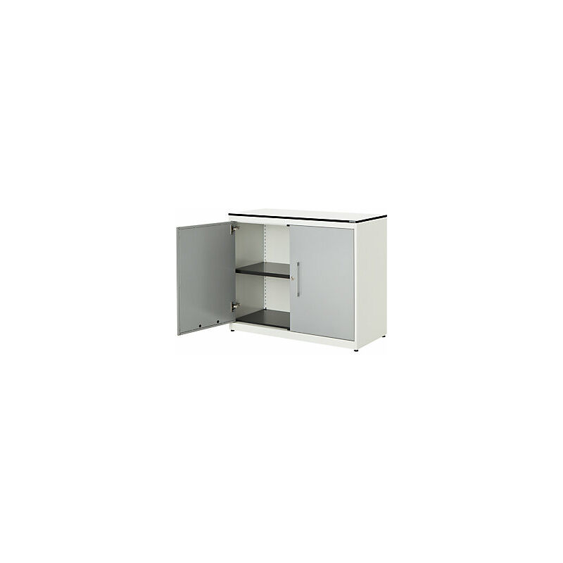 Armadio con ante a battente, alt. x largh. 818 x 1000 mm, piano in HPL con anima piena, 1 ripiano, bianco puro / alluminio brillante / bianco. Fornitura = montato. Larghezza = 1000 mm. Altezza = 818 mm. Profondità = 432 mm. Colore corpo = bianco puro RAL 9010. Materiale = acciaio, verniciato a polvere. Tipo di prodotto = armadi con ante a battente. Tipo di porta = anta a battente. Colore porta = alluminio brillante RAL 9006. Numero ante = 2 pz. Numero ripiani = 1 pz. Materiale ripiani = acciaio, verniciato a polvere. Colore ripiani = nero grafite RAL 9011. Portata per ripiano = 55 kg. Caratteristiche = con serratura. Serratura = serratura a cilindro girevole con chiusura a triplo chiavistello, 2 chiavi incluse. Numero file raccoglitori = 2 pz. Dotazione interna = 1 ripiano. Angolo di apertura delle porte = 120 °. Semplice spazio per raccoglitori, documenti e materiale da ufficio. Il modello classico tra gli armadi archivio. Design minimalista. Funzionalità pratica. Corpo: robusto corpo