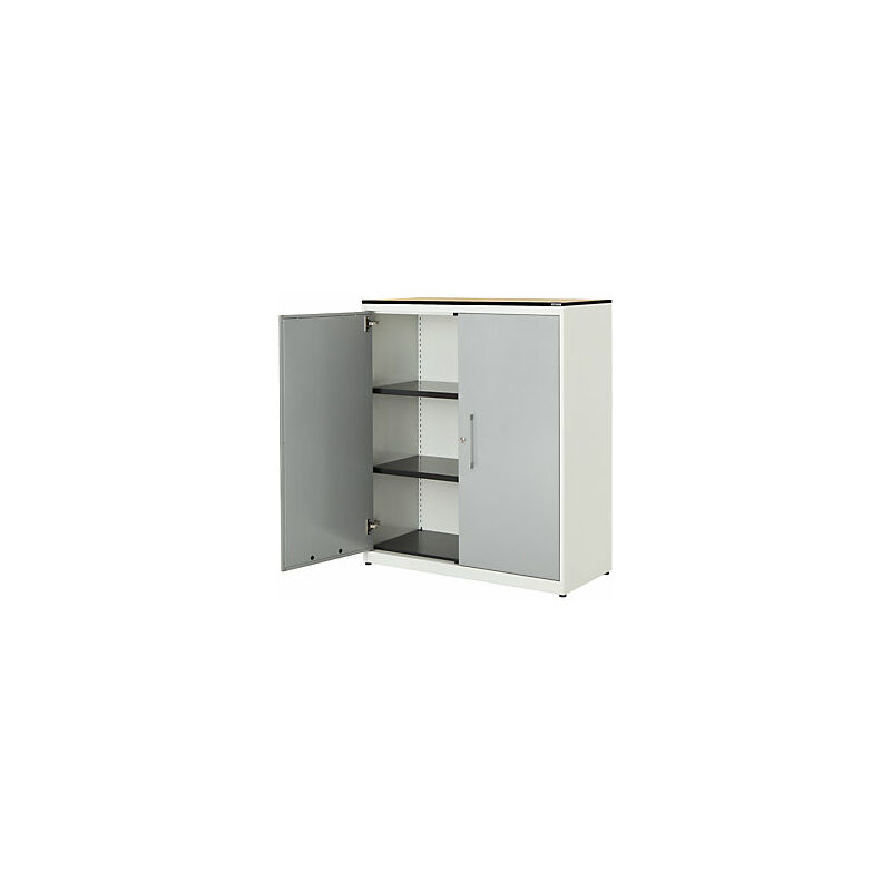 Armadio con ante a battente, alt. x largh. 1168 x 1000 mm, piano in HPL con anima piena, 2 ripiani, bianco puro / alluminio brillante / acero. Fornitura = montato. Larghezza = 1000 mm. Altezza = 1168 mm. Profondità = 432 mm. Colore corpo = bianco puro RAL 9010. Materiale = acciaio, verniciato a polvere. Tipo di prodotto = armadi con ante a battente. Tipo di porta = anta a battente. Colore porta = alluminio brillante RAL 9006. Numero ante = 2 pz. Numero ripiani = 2 pz. Materiale ripiani = acciaio, verniciato a polvere. Colore ripiani = nero grafite RAL 9011. Portata per ripiano = 55 kg. Caratteristiche = con serratura. Serratura = serratura a cilindro girevole con chiusura a triplo chiavistello, 2 chiavi incluse. Numero file raccoglitori = 3 pz. Dotazione interna = 2 ripiani. Angolo di apertura delle porte = 120 °. Semplice spazio per raccoglitori, documenti e materiale da ufficio. Il modello classico tra gli armadi archivio. Design minimalista. Funzionalità pratica. Corpo: robusto