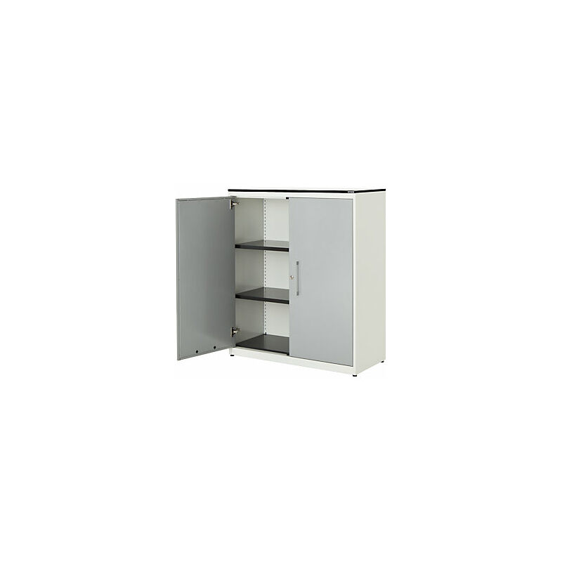 Armadio con ante a battente, alt. x largh. 1168 x 1000 mm, piano in HPL con anima piena, 2 ripiani, bianco puro / alluminio brillante / bianco. Fornitura = montato. Larghezza = 1000 mm. Altezza = 1168 mm. Profondità = 432 mm. Colore corpo = bianco puro RAL 9010. Materiale = acciaio, verniciato a polvere. Tipo di prodotto = armadi con ante a battente. Tipo di porta = anta a battente. Colore porta = alluminio brillante RAL 9006. Numero ante = 2 pz. Numero ripiani = 2 pz. Materiale ripiani = acciaio, verniciato a polvere. Colore ripiani = nero grafite RAL 9011. Portata per ripiano = 55 kg. Caratteristiche = con serratura. Serratura = serratura a cilindro girevole con chiusura a triplo chiavistello, 2 chiavi incluse. Numero file raccoglitori = 3 pz. Dotazione interna = 2 ripiani. Angolo di apertura delle porte = 120 °. Semplice spazio per raccoglitori, documenti e materiale da ufficio. Il modello classico tra gli armadi archivio. Design minimalista. Funzionalità pratica. Corpo: robusto