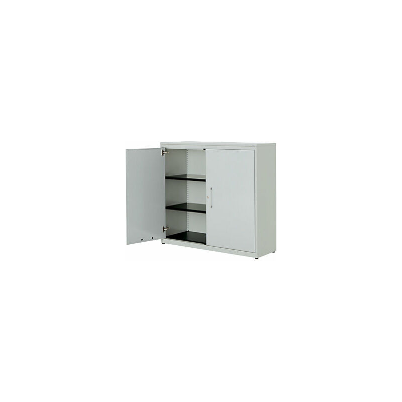 Armadio con ante a battente, alt. x largh. 1180 x 1200 mm, pannello in plastica, 2 ripiani, grigio chiaro / grigio chiaro / grigio chiaro. Fornitura = montato. Larghezza = 1200 mm. Altezza = 1180 mm. Profondità = 432 mm. Colore corpo = grigio chiaro RAL 7035. Materiale = acciaio, verniciato a polvere. Tipo di prodotto = armadi con ante a battente. Tipo di porta = anta a battente. Colore porta = grigio chiaro RAL 7035. Numero ante = 2 pz. Numero ripiani = 2 pz. Materiale ripiani = acciaio, verniciato a polvere. Colore ripiani = nero grafite RAL 9011. Portata per ripiano = 66 kg. Caratteristiche = con serratura. Serratura = serratura a cilindro girevole con chiusura a triplo chiavistello, 2 chiavi incluse. Numero file raccoglitori = 3 pz. Dotazione interna = 2 ripiani. Angolo di apertura delle porte = 120 °. Semplice spazio per raccoglitori, documenti e materiale da ufficio. Il modello classico tra gli armadi archivio. Design minimalista. Funzionalità pratica. Corpo: robusto corpo in
