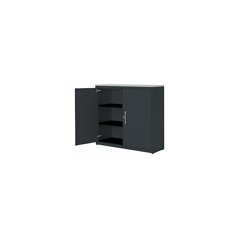 Armadio con ante a battente, alt. x largh. 1180 x 1200 mm, pannello in plastica, 2 ripiani, grigio antracite / grigio antracite / grigio chiaro. Fornitura = montato. Larghezza = 1200 mm. Altezza = 1180 mm. Profondità = 432 mm. Colore corpo = grigio antracite RAL 7016. Materiale = acciaio, verniciato a polvere. Tipo di prodotto = armadi con ante a battente. Tipo di porta = anta a battente. Colore porta = grigio antracite RAL 7016. Numero ante = 2 pz. Numero ripiani = 2 pz. Materiale ripiani = acciaio, verniciato a polvere. Colore ripiani = nero grafite RAL 9011. Portata per ripiano = 66 kg. Caratteristiche = con serratura. Serratura = serratura a cilindro girevole con chiusura a triplo chiavistello, 2 chiavi incluse. Numero file raccoglitori = 3 pz. Dotazione interna = 2 ripiani. Angolo di apertura delle porte = 120 °. Semplice spazio per raccoglitori, documenti e materiale da ufficio. Il modello classico tra gli armadi archivio. Design minimalista. Funzionalità pratica. Corpo: robusto