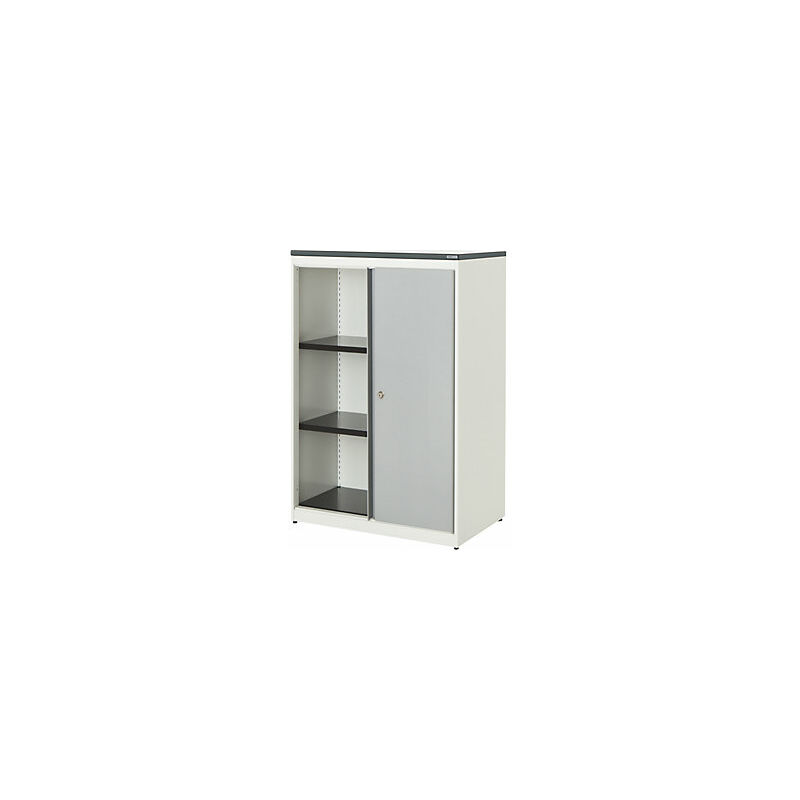 Armadio con ante scorrevoli, alt. x largh. x prof. 1180 x 800 x 432 mm, pannello in plastica, 2 ripiani, bianco puro / alluminio brillante / bianco. Fornitura = montato. Larghezza = 800 mm. Altezza = 1180 mm. Profondità = 432 mm. Colore corpo = bianco puro RAL 9010. Materiale = acciaio, verniciato a polvere. Tipo di prodotto = armadi con ante scorrevoli. Tipo di porta = porta scorrevole. Colore porta = alluminio brillante RAL 9006. Numero ante = 2 pz. Numero ripiani = 2 pz. Colore ripiani = nero grafite RAL 9011. Portata per ripiano = 44 kg. Caratteristiche = con serratura. Serratura = serratura a cilindro girevole con nucleo sostituibile, 2 chiavi incluse. Numero file raccoglitori = 3 pz. Dotazione interna = 2 ripiani. Linea di armadi di qualità con numerose possibilità di allestimento. Sfruttamento ottimale degli spazi mediante varianti combinabili tra loro in modo flessibile. Design moderno dalle linee eleganti. Versione salvaspazio con ante agevolmente scorrevoli. Se nell'ufficio