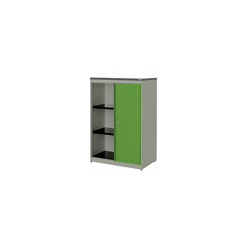 Armadio con ante scorrevoli, alt. x largh. x prof. 1180 x 800 x 432 mm, pannello in plastica, 2 ripiani, alluminio brillante / verde limone / bianco. Fornitura = montato. Larghezza = 800 mm. Altezza = 1180 mm. Profondità = 432 mm. Colore corpo = alluminio brillante RAL 9006. Materiale = acciaio, verniciato a polvere. Tipo di prodotto = armadi con ante scorrevoli. Tipo di porta = porta scorrevole. Colore porta = verde limone RAL 6018. Numero ante = 2 pz. Numero ripiani = 2 pz. Colore ripiani = nero grafite RAL 9011. Portata per ripiano = 44 kg. Caratteristiche = con serratura. Serratura = serratura a cilindro girevole con nucleo sostituibile, 2 chiavi incluse. Numero file raccoglitori = 3 pz. Dotazione interna = 2 ripiani. Linea di armadi di qualità con numerose possibilità di allestimento. Sfruttamento ottimale degli spazi mediante varianti combinabili tra loro in modo flessibile. Design moderno dalle linee eleganti. Versione salvaspazio con ante agevolmente scorrevoli. Se nell'ufficio
