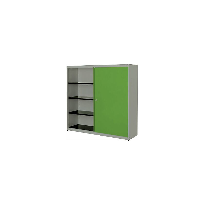 Armadio con ante scorrevoli, alt. x largh. x prof. 1516 x 1600 x 432 mm, pannello in acciaio, 3 x 2 ripiani, alluminio brillante / verde limone / alluminio brillante. Fornitura = montato. Larghezza = 1600 mm. Altezza = 1516 mm. Profondità = 432 mm. Colore corpo = alluminio brillante RAL 9006. Materiale = acciaio, verniciato a polvere. Tipo di prodotto = armadi con ante scorrevoli. Tipo di porta = porta scorrevole. Colore porta = verde limone RAL 6018. Numero ante = 2 pz. Numero ripiani = 3x2 pz. Colore ripiani = nero grafite RAL 9011. Portata per ripiano = 44 kg. Caratteristiche = con serratura. Serratura = serratura a cilindro girevole con nucleo sostituibile, 2 chiavi incluse. Numero file raccoglitori = 4 pz. Dotazione interna = 6 ripiani, parete divisoria. Linea di armadi di qualità con numerose possibilità di allestimento. Sfruttamento ottimale degli spazi mediante varianti combinabili tra loro in modo flessibile. Design moderno dalle linee eleganti. Versione salvaspazio con ante