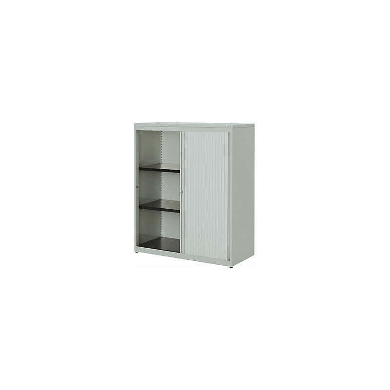 Armadio a serranda orizzontale, alt. x largh. x prof. 1180 x 1000 x 432 mm, pannello in plastica, 2 ripiani, grigio chiaro / grigio chiaro / grigio chiaro. Fornitura = montato. Altezza = 1180 mm. Larghezza = 1000 mm. Profondità = 432 mm. Colore corpo = grigio chiaro RAL 7035. Materiale corpo = acciaio, verniciato a polvere. Colore serranda = grigio chiaro RAL 7035. Caratteristiche = con serratura. Serratura = serratura a cilindro girevole con nucleo sostituibile, 2 chiavi incluse. Numero file raccoglitori = 3 pz. Materiale serranda = plastica. Dotazione interna = 2 ripiani. Numero ripiani = 2 pz. Portata per ripiano = 55 kg. Colore ripiani = nero grafite RAL 9011. Tipo di porta = serranda orizzontale. Colore piano = grigio chiaro. Passo di regolazione altezza ripiani = 25 mm. Larghezza interna = 868 mm. Altezza interna = 1030 mm. Profondità interna = 368 mm. Spessore ripiani = 25 mm. Spessore del corpo = 0.75 mm. Altezza zoccolo = 50 mm. Larghezza piano = 1001 mm. Salvaspazio.