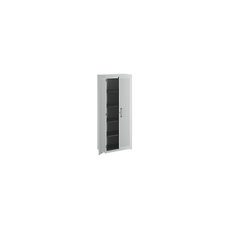 Armadio con ante a battente, con efficace assorbimento acustico, alt. x largh. x prof. 1956 x 800 x 432 mm, 4 ripiani, grigio chiaro / grigio chiaro. Fornitura = montato. Larghezza = 800 mm. Altezza = 1956 mm. Profondità = 432 mm. Colore corpo = grigio chiaro RAL 7035. Materiale = acciaio, verniciato a polvere. Tipo di prodotto = armadi con ante a battente. Tipo di porta = anta a battente. Colore porta = grigio chiaro RAL 7035. Numero ante = 2 pz. Numero ripiani = 4 pz. Materiale ripiani = acciaio, verniciato a polvere. Colore ripiani = nero grafite RAL 9011. Portata per ripiano = 44 kg. Caratteristiche = con serratura. Serratura = serratura a cilindro girevole con chiusura a triplo chiavistello, 2 chiavi incluse. Numero file raccoglitori = 5 pz. Dotazione interna = 4 ripiani. Angolo di apertura delle porte = 120 °. Semplice spazio per raccoglitori, documenti e materiale da ufficio. Il modello classico tra gli armadi archivio. Design minimalista. Funzionalità pratica. Robusto corpo in