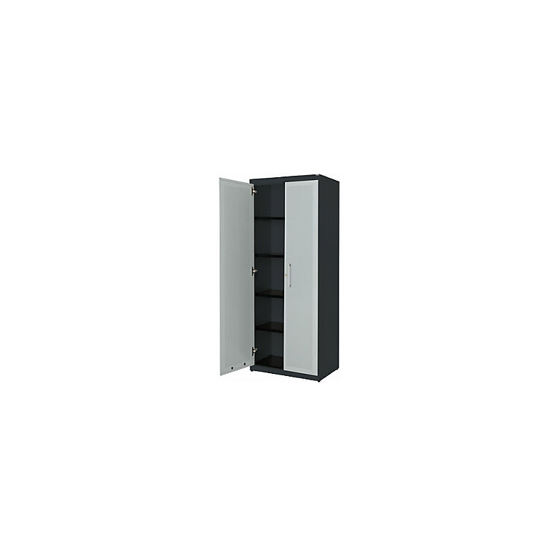 Armadio con ante a battente, con efficace assorbimento acustico, alt. x largh. x prof. 1956 x 800 x 432 mm, 4 ripiani, grigio antracite / grigio chiaro. Fornitura = montato. Larghezza = 800 mm. Altezza = 1956 mm. Profondità = 432 mm. Colore corpo = grigio antracite RAL 7016. Materiale = acciaio, verniciato a polvere. Tipo di prodotto = armadi con ante a battente. Tipo di porta = anta a battente. Colore porta = grigio chiaro RAL 7035. Numero ante = 2 pz. Numero ripiani = 4 pz. Materiale ripiani = acciaio, verniciato a polvere. Colore ripiani = nero grafite RAL 9011. Portata per ripiano = 44 kg. Caratteristiche = con serratura. Serratura = serratura a cilindro girevole con chiusura a triplo chiavistello, 2 chiavi incluse. Numero file raccoglitori = 5 pz. Dotazione interna = 4 ripiani. Angolo di apertura delle porte = 120 °. Semplice spazio per raccoglitori, documenti e materiale da ufficio. Il modello classico tra gli armadi archivio. Design minimalista. Funzionalità pratica. Robusto