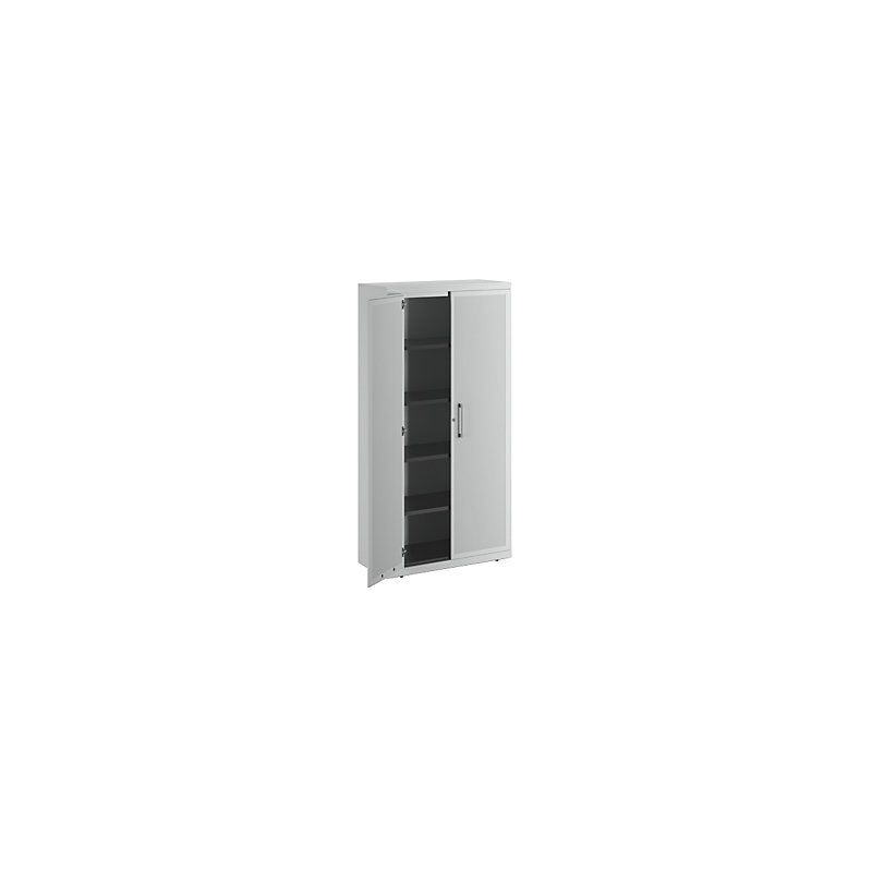 Armadio con ante a battente, con efficace assorbimento acustico, alt. x largh. x prof. 1956 x 1000 x 432 mm, 4 ripiani, grigio chiaro / grigio chiaro. Fornitura = montato. Larghezza = 1000 mm. Altezza = 1956 mm. Profondità = 432 mm. Colore corpo = grigio chiaro RAL 7035. Materiale = acciaio, verniciato a polvere. Tipo di prodotto = armadi con ante a battente. Tipo di porta = anta a battente. Colore porta = grigio chiaro RAL 7035. Numero ante = 2 pz. Numero ripiani = 4 pz. Materiale ripiani = acciaio, verniciato a polvere. Colore ripiani = nero grafite RAL 9011. Portata per ripiano = 55 kg. Caratteristiche = con serratura. Serratura = serratura a cilindro girevole con chiusura a triplo chiavistello, 2 chiavi incluse. Numero file raccoglitori = 5 pz. Dotazione interna = 4 ripiani. Angolo di apertura delle porte = 120 °. Semplice spazio per raccoglitori, documenti e materiale da ufficio. Il modello classico tra gli armadi archivio. Design minimalista. Funzionalità pratica. Robusto corpo