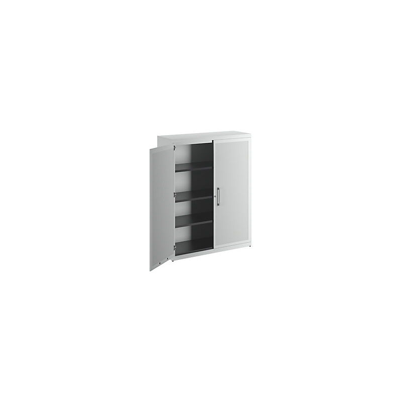 Armadio con ante a battente, con efficace assorbimento acustico, alt. x largh. x prof. 1516 x 1200 x 432 mm, 3 ripiani, grigio chiaro / grigio chiaro. Fornitura = montato. Larghezza = 1200 mm. Altezza = 1516 mm. Profondità = 432 mm. Colore corpo = grigio chiaro RAL 7035. Materiale = acciaio, verniciato a polvere. Tipo di prodotto = armadi con ante a battente. Tipo di porta = anta a battente. Colore porta = grigio chiaro RAL 7035. Numero ante = 2 pz. Numero ripiani = 3 pz. Materiale ripiani = acciaio, verniciato a polvere. Colore ripiani = nero grafite RAL 9011. Portata per ripiano = 66 kg. Caratteristiche = con serratura. Serratura = serratura a cilindro girevole con chiusura a triplo chiavistello, 2 chiavi incluse. Numero file raccoglitori = 4 pz. Dotazione interna = 3 ripiani. Angolo di apertura delle porte = 120 °. Semplice spazio per raccoglitori, documenti e materiale da ufficio. Il modello classico tra gli armadi archivio. Design minimalista. Funzionalità pratica. Robusto corpo