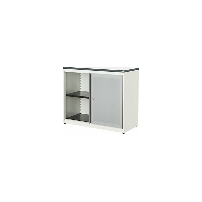 Armadio con ante scorrevoli, con efficace assorbimento acustico, pannello in plastica, alt. x largh. x prof. 830 x 1000 x 432 mm, 1 ripiano, bianco puro / alluminio brillante / bianco. Fornitura = montato. Larghezza = 1000 mm. Altezza = 830 mm. Profondità = 432 mm. Colore corpo = bianco puro RAL 9010. Materiale = acciaio, verniciato a polvere. Tipo di prodotto = armadi con ante scorrevoli. Tipo di porta = porta scorrevole. Colore porta = alluminio brillante RAL 9006. Numero ante = 2 pz. Numero ripiani = 1 pz. Colore ripiani = nero grafite RAL 9011. Portata per ripiano = 55 kg. Caratteristiche = con serratura. Serratura = serratura a cilindro girevole con nucleo sostituibile, 2 chiavi incluse. Numero file raccoglitori = 2 pz. Dotazione interna = 1 ripiano. Versione salvaspazio con ante agevolmente scorrevoli. Se nell'ufficio prevalgono aree di transito molto strette, si consiglia l'utilizzo di questo armadio. Qui nessuna anta aperta ingombrerà il passaggio. Ideale per piano d'appoggio