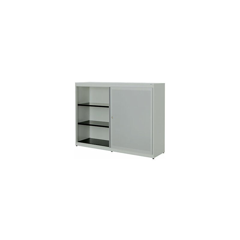 Armadio con ante scorrevoli, con efficace assorbimento acustico, pannello in plastica, alt. x largh. x prof. 1180 x 1600 x 432 mm, 2 x 2 ripiani, grigio chiaro / grigio chiaro / grigio chiaro. Fornitura = montato. Larghezza = 1600 mm. Altezza = 1180 mm. Profondità = 432 mm. Colore corpo = grigio chiaro RAL 7035. Materiale = acciaio, verniciato a polvere. Tipo di prodotto = armadi con ante scorrevoli. Tipo di porta = porta scorrevole. Colore porta = grigio chiaro RAL 7035. Numero ante = 2 pz. Numero ripiani = 2x2 pz. Colore ripiani = nero grafite RAL 9011. Portata per ripiano = 44 kg. Caratteristiche = con serratura. Serratura = serratura a cilindro girevole con nucleo sostituibile, 2 chiavi incluse. Numero file raccoglitori = 3 pz. Dotazione interna = 4 ripiani, parete divisoria. Versione salvaspazio con ante agevolmente scorrevoli. Se nell'ufficio prevalgono aree di transito molto strette, si consiglia l'utilizzo di questo armadio. Qui nessuna anta aperta ingombrerà il passaggio.