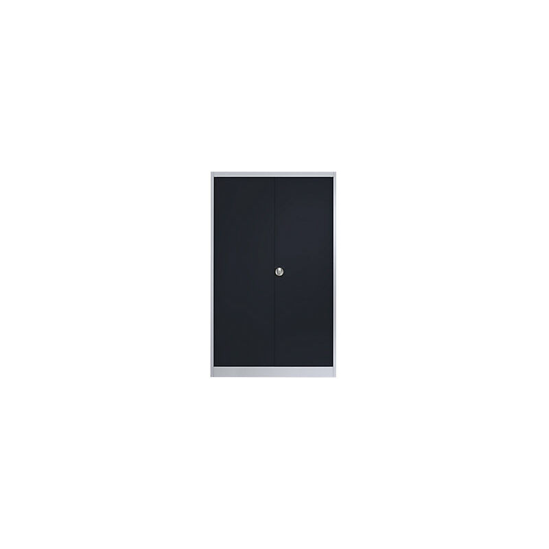 Armadio in acciaio con ante a battente, 4 ripiani, larghezza 1200 mm, alluminio brillante / grigio antracite, profondità esterna 420 mm. Fornitura = montato. Larghezza = 1200 mm. Altezza = 1950 mm. Profondità = 420 mm. Colore corpo = alluminio brillante RAL 9006. Materiale = lamiera d'acciaio, con verniciatura a forno. Tipo di prodotto = armadi con ante a battente. Tipo di porta = anta a battente. Colore porta = grigio antracite RAL 7016. Numero ripiani = 4 pz. Colore ripiani = nero grafite RAL 9011. Portata per ripiano = 65 kg. Serratura = serratura di sicurezza a cilindro con nucleo sostituibile, 2 chiavi incluse. Dotazione interna = 4 ripiani. Passo di regolazione altezza ripiani = 35 mm. Altezza zoccolo = 100 mm. Angolo di apertura delle porte = 135 °. Spessore del corpo = 0.8 mm. Con ante a battente. Robusto corpo spesso 0,8 mm in lamiera d'acciaio saldata e riciclabile. Verniciatura a fuoco di qualità. Ripiani verniciati regolabili in altezza con passo di 35 mm. Portata ca. 65 kg