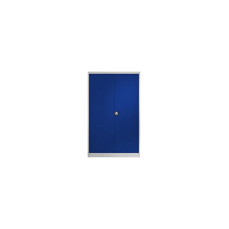 Armadio in acciaio con ante a battente, 4 ripiani, larghezza 1200 mm, grigio chiaro / blu oltremare, profondità esterna 600 mm. Fornitura = montato. Larghezza = 1200 mm. Altezza = 1950 mm. Profondità = 600 mm. Colore corpo = grigio chiaro RAL 7035. Materiale = lamiera d'acciaio, con verniciatura a forno. Tipo di prodotto = armadi con ante a battente. Tipo di porta = anta a battente. Colore porta = blu oltremare RAL 5002. Numero ripiani = 4 pz. Colore ripiani = nero grafite RAL 9011. Portata per ripiano = 65 kg. Serratura = serratura di sicurezza a cilindro con nucleo sostituibile, 2 chiavi incluse. Dotazione interna = 4 ripiani. Passo di regolazione altezza ripiani = 35 mm. Altezza zoccolo = 100 mm. Angolo di apertura delle porte = 135 °. Spessore del corpo = 0.8 mm. Con ante a battente. Robusto corpo spesso 0,8 mm in lamiera d'acciaio saldata e riciclabile. Verniciatura a fuoco di qualità. Ripiani verniciati regolabili in altezza con passo di 35 mm. Portata ca. 65 kg per ripiano. Ante