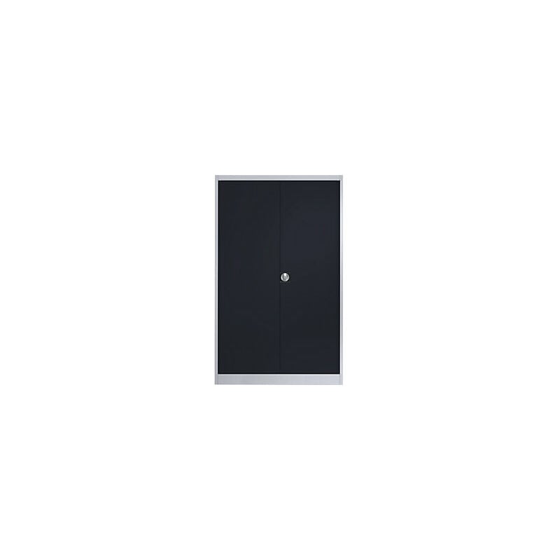 Armadio in acciaio con ante a battente, 4 ripiani, larghezza 1200 mm, alluminio brillante / grigio antracite, profondità esterna 600 mm. Fornitura = montato. Larghezza = 1200 mm. Altezza = 1950 mm. Profondità = 600 mm. Colore corpo = alluminio brillante RAL 9006. Materiale = lamiera d'acciaio, con verniciatura a forno. Tipo di prodotto = armadi con ante a battente. Tipo di porta = anta a battente. Colore porta = grigio antracite RAL 7016. Numero ripiani = 4 pz. Colore ripiani = nero grafite RAL 9011. Portata per ripiano = 65 kg. Serratura = serratura di sicurezza a cilindro con nucleo sostituibile, 2 chiavi incluse. Dotazione interna = 4 ripiani. Passo di regolazione altezza ripiani = 35 mm. Altezza zoccolo = 100 mm. Angolo di apertura delle porte = 135 °. Spessore del corpo = 0.8 mm. Con ante a battente. Robusto corpo spesso 0,8 mm in lamiera d'acciaio saldata e riciclabile. Verniciatura a fuoco di qualità. Ripiani verniciati regolabili in altezza con passo di 35 mm. Portata ca. 65 kg