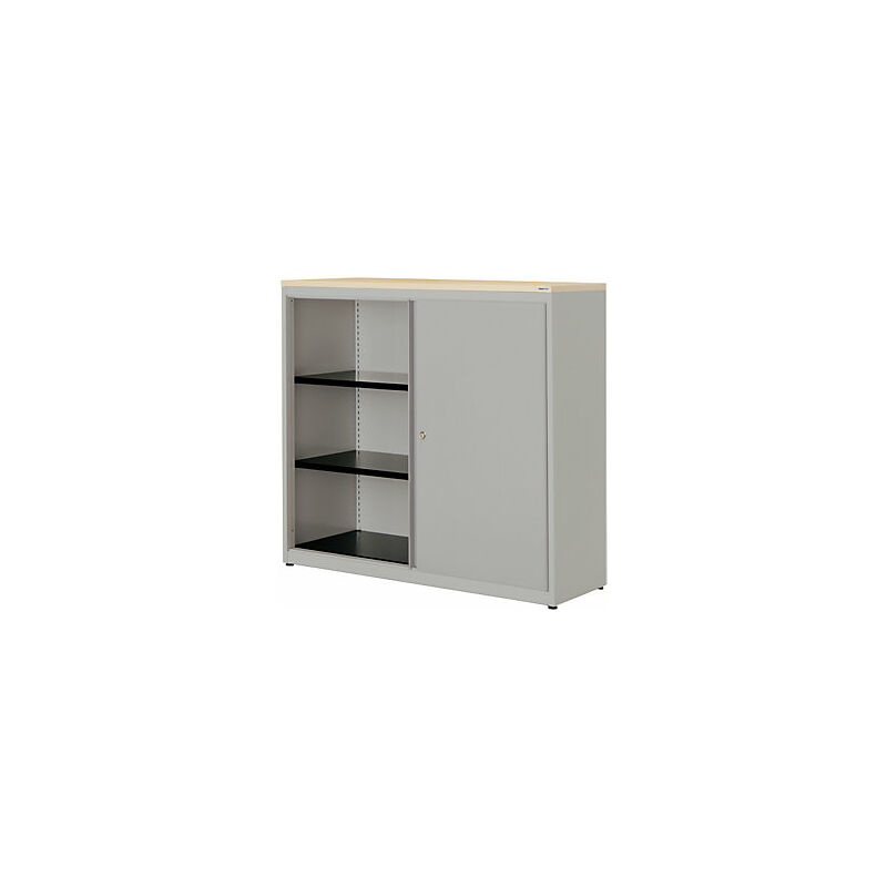 Armadio con ante scorrevoli, alt. x largh. x prof. 1180 x 1200 x 432 mm, pannello in plastica, 2 ripiani, alluminio brillante / alluminio brillante / acero. Fornitura = montato. Larghezza = 1200 mm. Altezza = 1180 mm. Profondità = 432 mm. Colore corpo = alluminio brillante RAL 9006. Materiale = acciaio, verniciato a polvere. Tipo di prodotto = armadi con ante scorrevoli. Tipo di porta = porta scorrevole. Colore porta = alluminio brillante RAL 9006. Numero ante = 2 pz. Numero ripiani = 2 pz. Colore ripiani = nero grafite RAL 9011. Portata per ripiano = 66 kg. Caratteristiche = con serratura. Serratura = serratura a cilindro girevole con nucleo sostituibile, 2 chiavi incluse. Numero file raccoglitori = 3 pz. Dotazione interna = 2 ripiani. Linea di armadi di qualità con numerose possibilità di allestimento. Sfruttamento ottimale degli spazi mediante varianti combinabili tra loro in modo flessibile. Design moderno dalle linee eleganti. Versione salvaspazio con ante agevolmente scorrevoli.