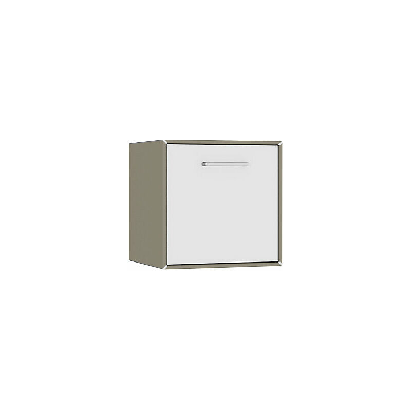 Box singolo, da appendere, 1 anta a ribalta per vano bar, larghezza 385 mm, grigio beige / bianco puro. Fornitura = montato. Larghezza = 385 mm. Altezza = 385 mm. Profondità = 385 mm. Colore corpo = grigio beige RAL 7006, bianco puro RAL 9010. Materiale = acciaio. Tipo di prodotto = box singoli con vano bar. Tipo di porta = ribaltina frontale. Colore porta = bianco puro RAL 9010. Numero ante = 1 pz. Numero file raccoglitori = 1 pz. element.x è un sistema di stoccaggio modulare estremamente innovativo per organizzare, mettere via e presentare. È un sistema molto versatile per la zona living, la casa o l'ufficio. Eccellente stabilità grazie al robusto corpo in lamiera d'acciaio a doppia parete. Verniciatura a polvere di alta qualità. Design elegante grazie ai listelli angolari cromati. Questo elemento pensile con vano bar è ideale per decorare le pareti in ingressi, sale d'attesa, uffici, sale conferenze o in appartamenti e offre molto spazio utile per oggetti di ogni tipo. Il vano bar