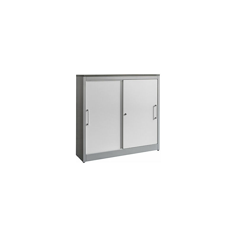 Armadio con ante scorrevoli ARCOS, 2 ripiani, alt. x largh. x prof. 1240 x 1200 x 420 mm, alluminio brillante / bianco puro. Fornitura = montato. Larghezza = 1200 mm. Altezza = 1240 mm. Profondità = 420 mm. Colore corpo = alluminio brillante RAL 9006. Materiale = lamiera d'acciaio, verniciata a polvere. Tipo di prodotto = armadi con ante scorrevoli. Tipo di porta = porta scorrevole. Colore porta = bianco puro RAL 9010. Numero ante = 2 pz. Numero ripiani = 2 pz. Materiale ripiani = acciaio, verniciato a polvere. Colore ripiani = nero grafite RAL 9011. Serratura = serratura a cilindro girevole con nucleo sostituibile, 2 chiavi incluse. Numero file raccoglitori = 3 pz. Dotazione interna = 2 ripiani. Passo di regolazione altezza ripiani = 35 mm. Altezza zoccolo = 100 mm. Spessore del corpo = 0.88 mm. Numerose varianti di colore per allestimento individuale. Tre file di raccoglitori. Verniciatura a fuoco di qualità. L'armadio salvaspazio. Corpo robusto e saldato con pratiche ante scorrevoli