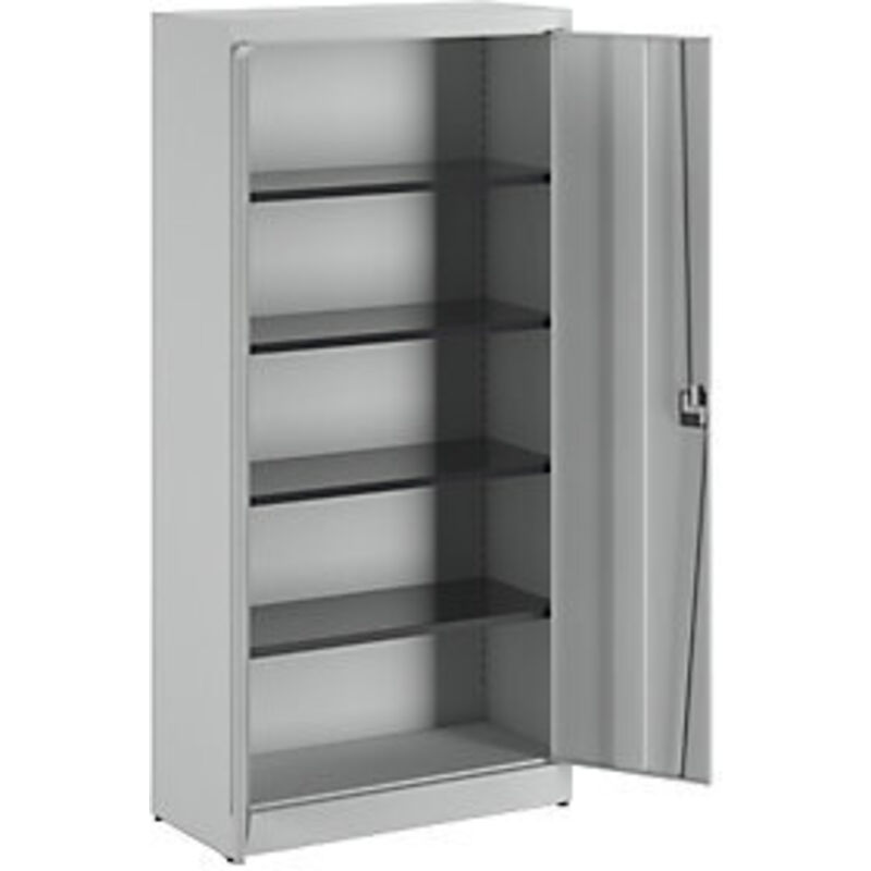Armadio con ante a battente ARCOS, 4 ripiani, alt. x largh. x prof. 1950 x 950 x 420 mm, grigio chiaro. Fornitura = montato. Larghezza = 950 mm. Altezza = 1950 mm. Profondità = 420 mm. Colore corpo = grigio chiaro RAL 7035. Materiale = lamiera d'acciaio, verniciata a polvere. Tipo di prodotto = armadi con ante a battente. Tipo di porta = anta a battente. Colore porta = grigio chiaro RAL 7035. Numero ante = 2 pz. Numero ripiani = 4 pz. Materiale ripiani = acciaio, verniciato a polvere. Colore ripiani = nero grafite RAL 9011. Portata per ripiano = 65 kg. Caratteristiche = con serratura. Serratura = serratura di sicurezza a cilindro con nucleo sostituibile, 2 chiavi incluse. Numero file raccoglitori = 5 pz. Dotazione interna = 4 ripiani regolabili. Passo di regolazione altezza ripiani = 35 mm. Altezza zoccolo = 100 mm. Angolo di apertura delle porte = 135 °. Spessore del corpo = 0.88 mm. Ripiani regolabili in altezza. Angolo di apertura anta: 135°. Serratura di sicurezza a triplo