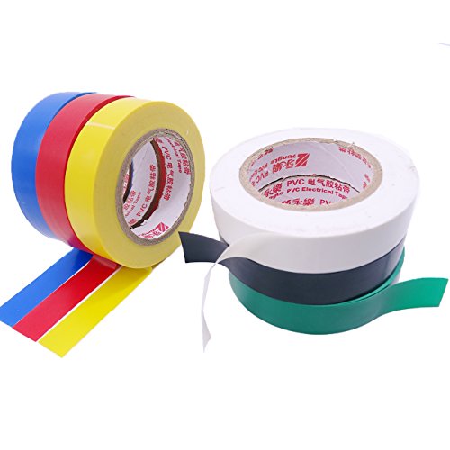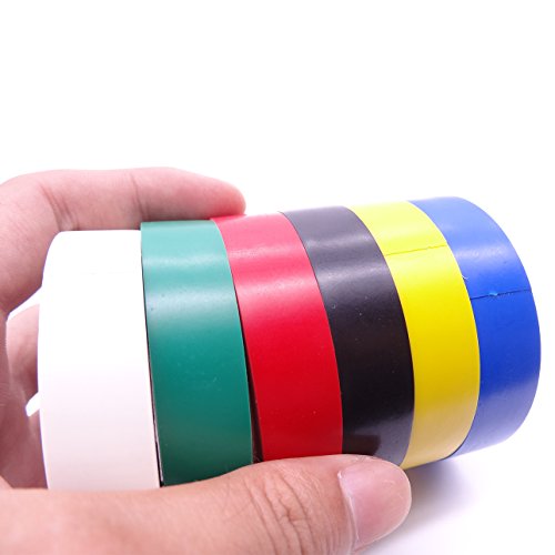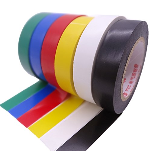Set di nastri elettrici: 6 confezioni in una pila di 6 rotoli colorati (giallo, verde, blu, rosso, bianco, nero) / 6 rotoli di nastro nero di buona qualità