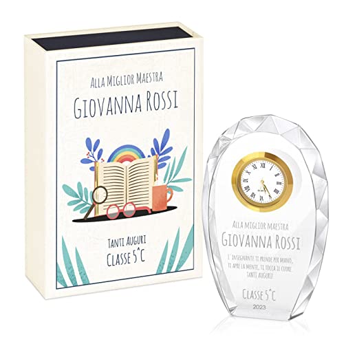 IDEA REGALO PER L'INSEGNANTE: La statuetta di vetro con un orologio, insieme alla scatola personalizzabile è un'ottima idea regalo per l'insegnante, il professore, la professoressa, il relatore, il docente, la maestra d'asilo, il preside o l'educatore. Sarà un regalo ideale per un semplice ringraziamento per la fine dell'anno scolastico, per un compleanno o pensionamento. È il modo perfetto per esprimere la gratitudine.
