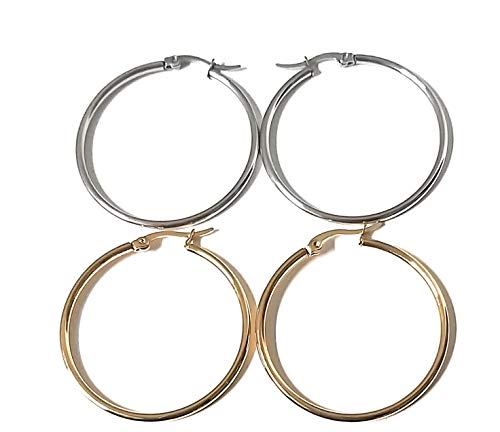 Mavijewel Orecchini Donna Uomo Cerchio 25mm Coppia Colore Argento e Colore Oro in Acciaio #Idea Regalo#Confezione Inclusa#emozionale#Charms#Made in Italy#SPEDIZIONE Gratuita