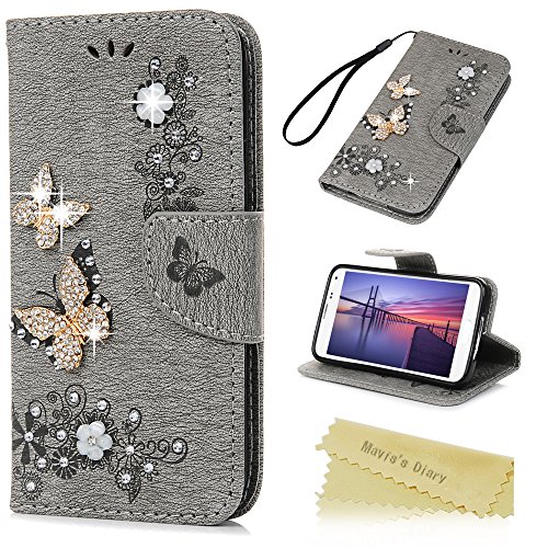 Mavis's Diary, custodia flip a libro per Samsung Galaxy S5 Neo i9600 in pelle sintetica in poliuretano, con chiusura magnetica, scomparto per carte di credito, supporto inclinabile e motivo 3D di farfalle dorate e luccicanti