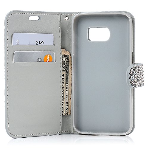 Mavis's Diary - custodia a libro per Samsung Galaxy S7, pelle PU di ottima qualità con gemme, design sottile. Dotata di comparto con clip magnetica per carta di identità/carta di credito. Include tappo anti-polvere e penna. Colore: blu Silver