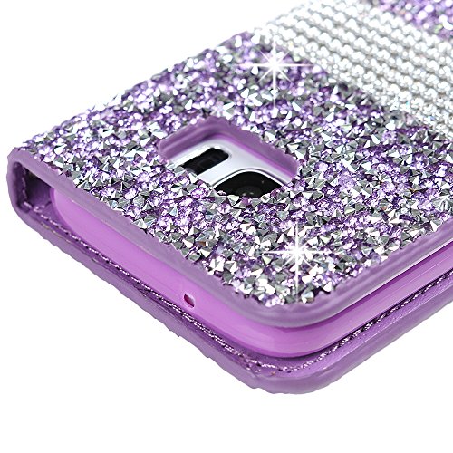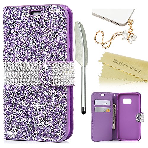 Mavis's Diary - custodia a libro per Samsung Galaxy S7, pelle PU di ottima qualità con gemme, design sottile. Dotata di comparto con clip magnetica per carta di identità/carta di credito. Include tappo anti-polvere e penna. Colore: blu Purple