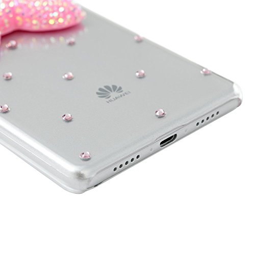 Mavis's Diary Huawei P9 Lite Custodia Trasparente Cristallo Bling Strass Cover 3D Custodia Duro del PC di Plastica Estremamente Sottile - Progettazione Fiocco Rosa