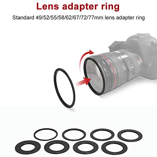 La forte compatibilità, dotata di anello adattatore da 49 mm, 52 mm, 58 mm, 62 mm, 67 mm, 72 mm, 77 mm, è compatibile con tutti i tipi di registrazioni video per telefoni cellulari e fotocamere.