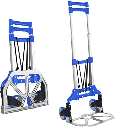MAXBROTHERS Carrello pieghevole in alluminio, 2 Ruote di Gomma e Funi di Espansionecon ruote in gomma, con manico estraibile per carichi fino a 80 kg