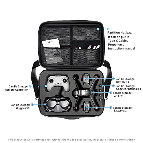 【Altamente personalizzato】 con modulo tagliato su misura per DJI FPV Combo, può contenere 1 x DJI FPV, 1 x telecomando, 1 x occhiali V2, 2 x batteria, 1 x controller di movimento, 1 x adattatore di alimentazione CA e altri accessori di base. Nota: solo custodia, DJI FPV Combo e accessori non inclusi.