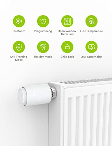 Maxcio Valvola Termostatica Intelligente, Controllo da Maxcio APP tramite Bluetooth, Termostato Smart Compatibile con Alexa e Google Home, Display LCD, Valvola Termostatica con Child Lock-2 Pezzo